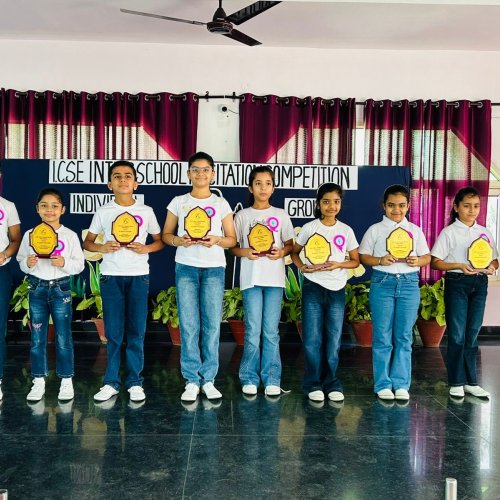 St. Xavier’s Sr. Sec. School, Sector -44, Chandigarh team comprising of Akshadha IIIA, Anantya Singh IIIA, Eveleen Singh IIID, Aashriya IVA, Aanvi Sharma IVA, Anaisha Asit Kishore IVE, Jeevansh Makkar VA, Gursirat Kaur VB, Samaira VB won the FIRST POSITION in ICSE Inter School Poetry Recitation Competition organized by St. Xavier’s International School, Zirakpur on 30 October, 2025.