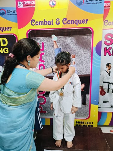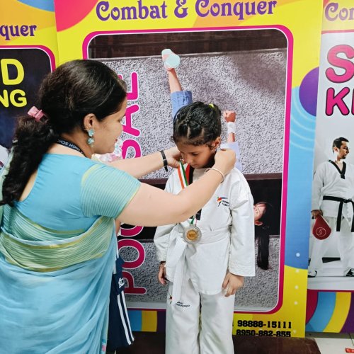 Ovia Chawala won the Silver Medal in Kyorugi at the 7th Defence Cup Inter Club Taekwondo Championship 2025, held on 28th September at New India High School, Pinjore age category 4-7 years